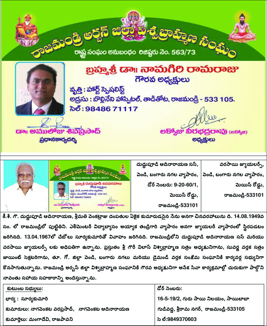 All Rights Reserved. Vishwa Brahmana Sangam, Rajahmundry